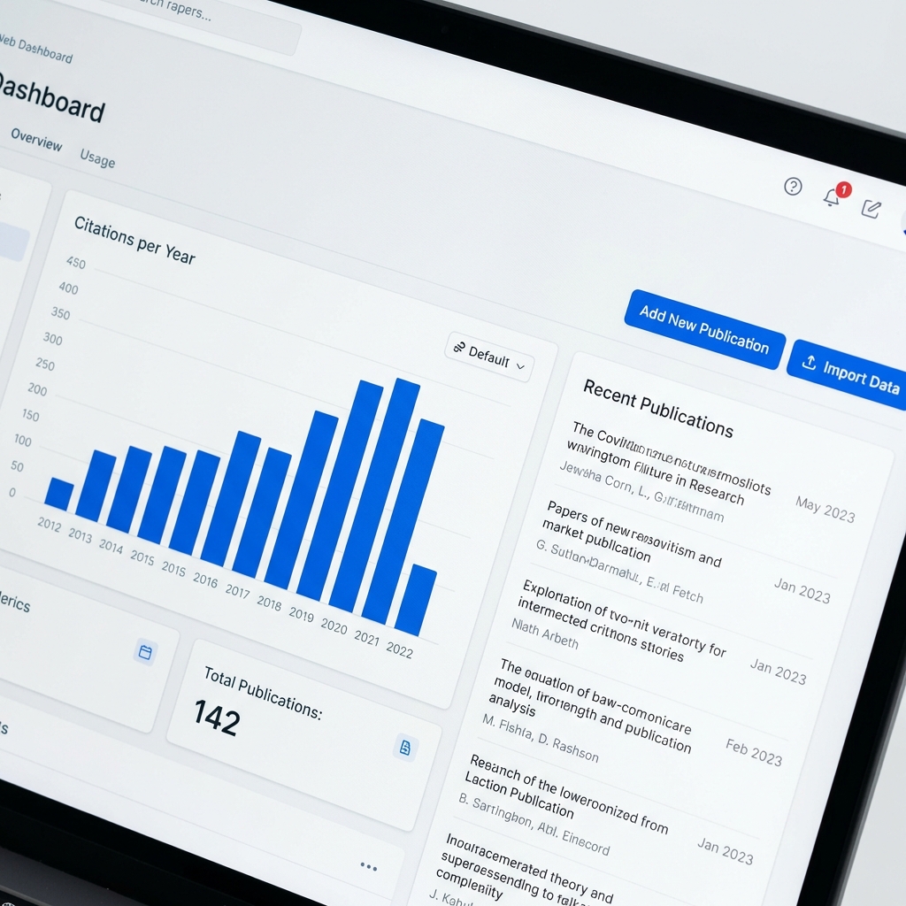 論文、学会発表、著書などの業績を専用の管理画面から入力するだけで、 自動的にきれいにフォーマットされてWebサイトに表示されます。 DOIリンクの自動生成や、PDFファイルのアップロードもワンクリックで完了。 タグ付けによる自動分類も可能です。